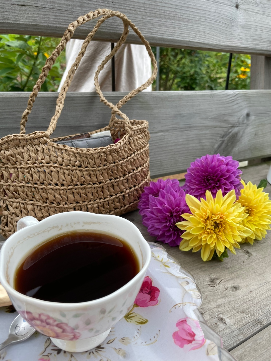 어머니의 예쁜 꽃밭과 예쁜 찻잔에 마신 커피맛,