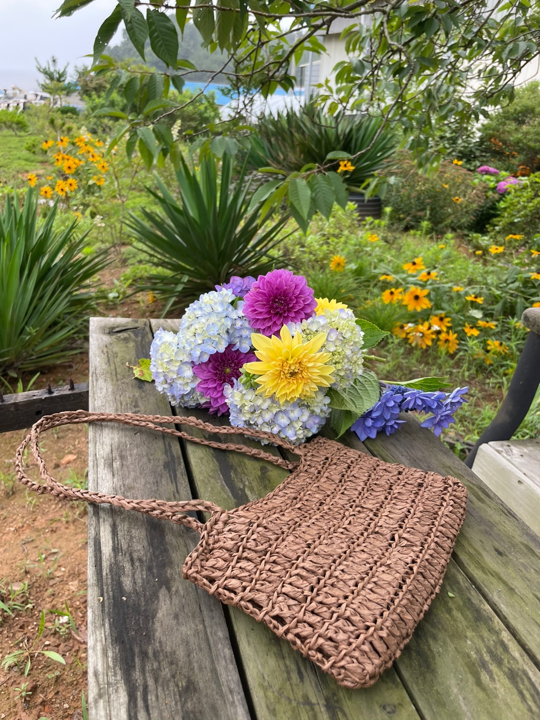 감사한 마음으로 준비한 뜨개가방을 전하고 어머니 꽃밭에서 한아름 꽃다발을 받았다.